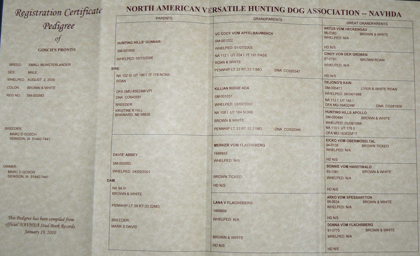 NAVHDA NA: 110 Prize I, Nose: 4; Search: 4; Water: 4; Pointing: 4; Tracking: 4; Desire: 4; Cooperation: 3