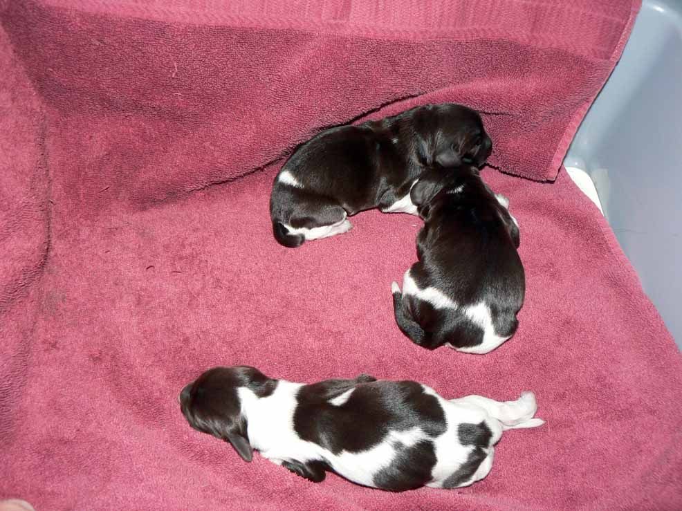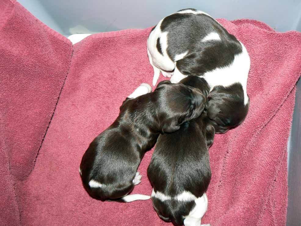 Splash had her litter today and ended up with 8 pups, 3 males and 5 females.