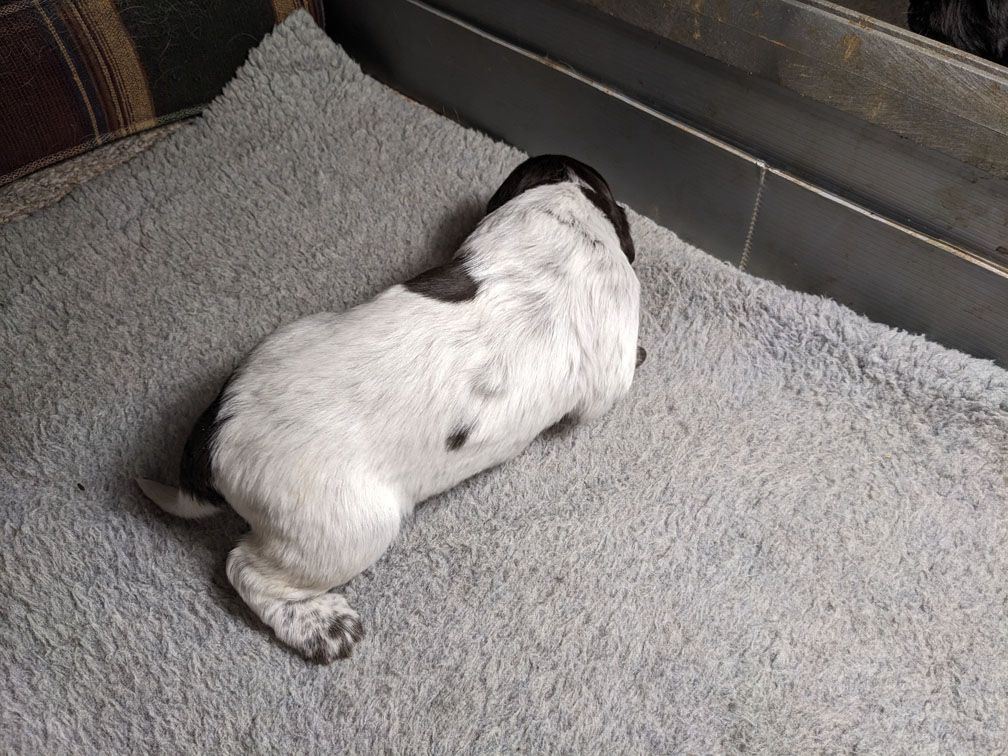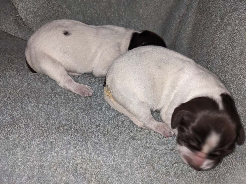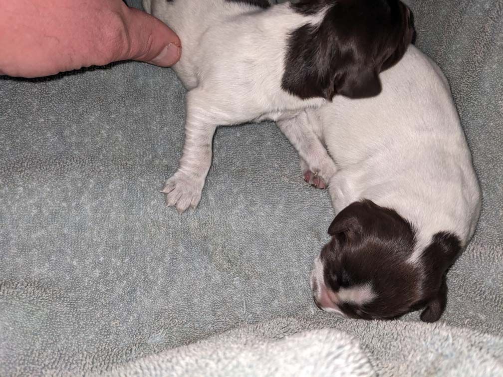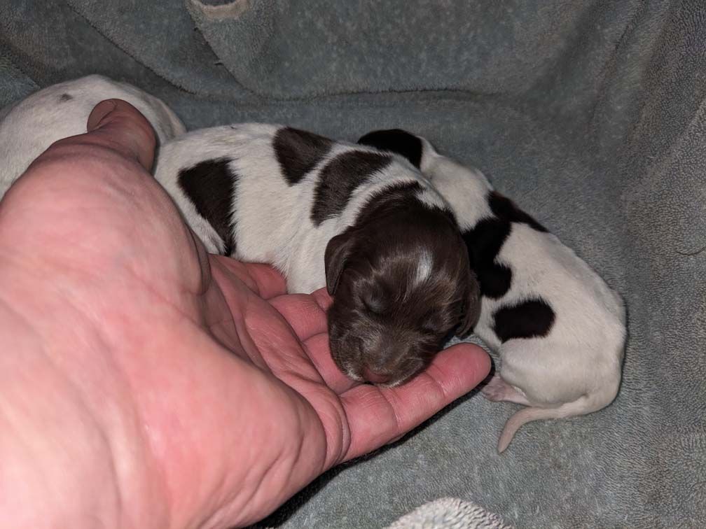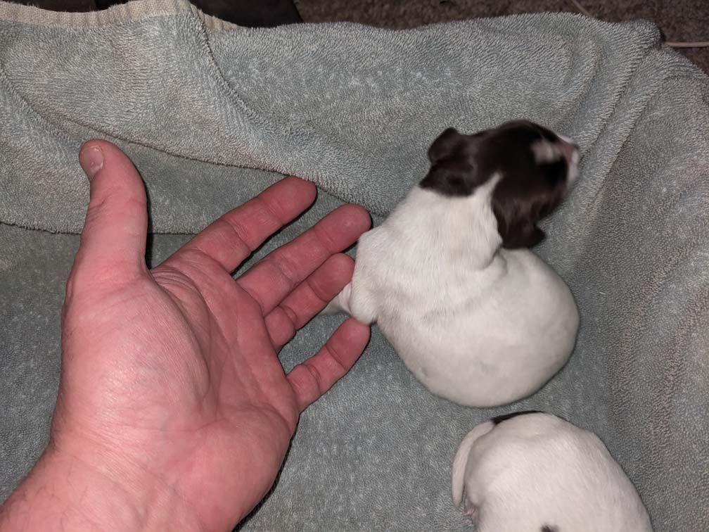 Update 2/9/26: Jig had her litter on 2/7/26. She had 8 total pups but one was born dead. We also lost a small male yesterday evening and are doing a little supplemental feeding of another smaller male that looked like it was falling behind a little bit. So currently there are 2 females and 4 males and hopefully the little male we are are watching closely continues to keep improving.