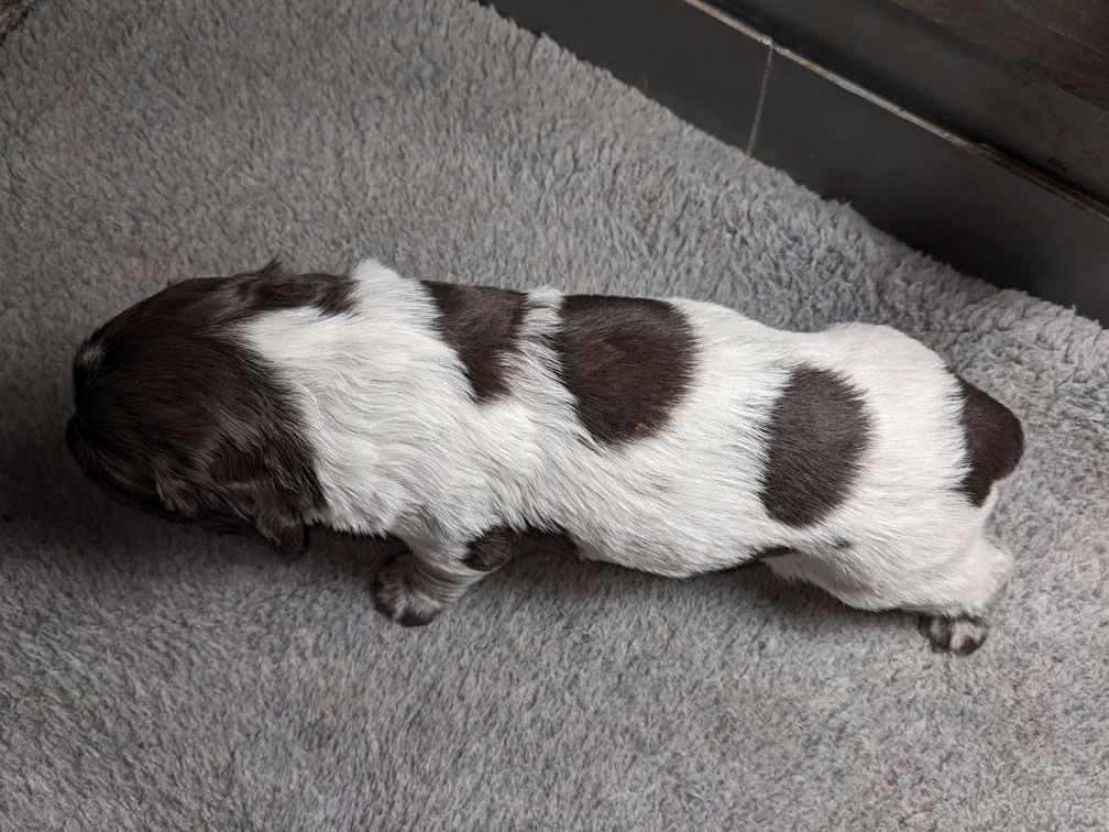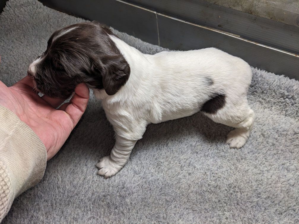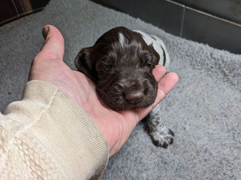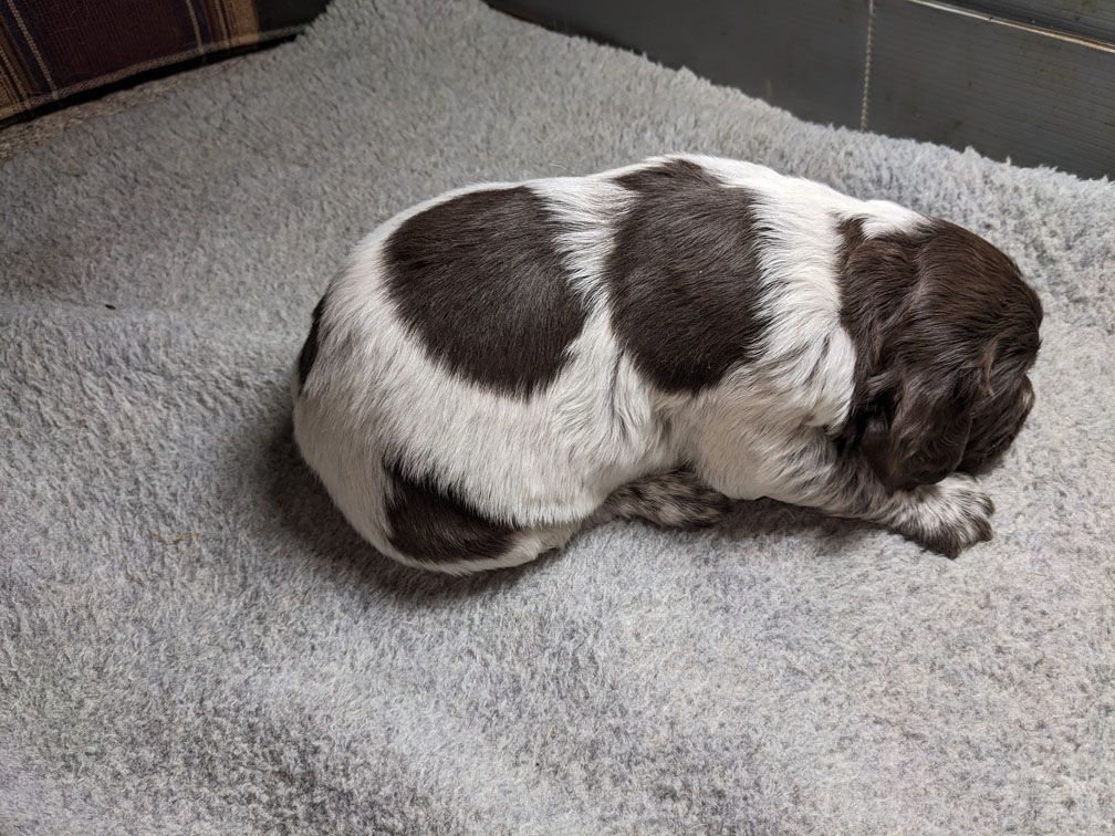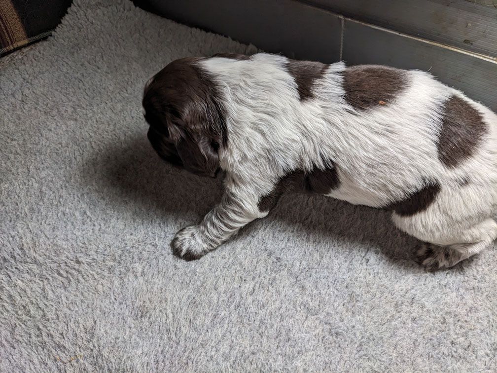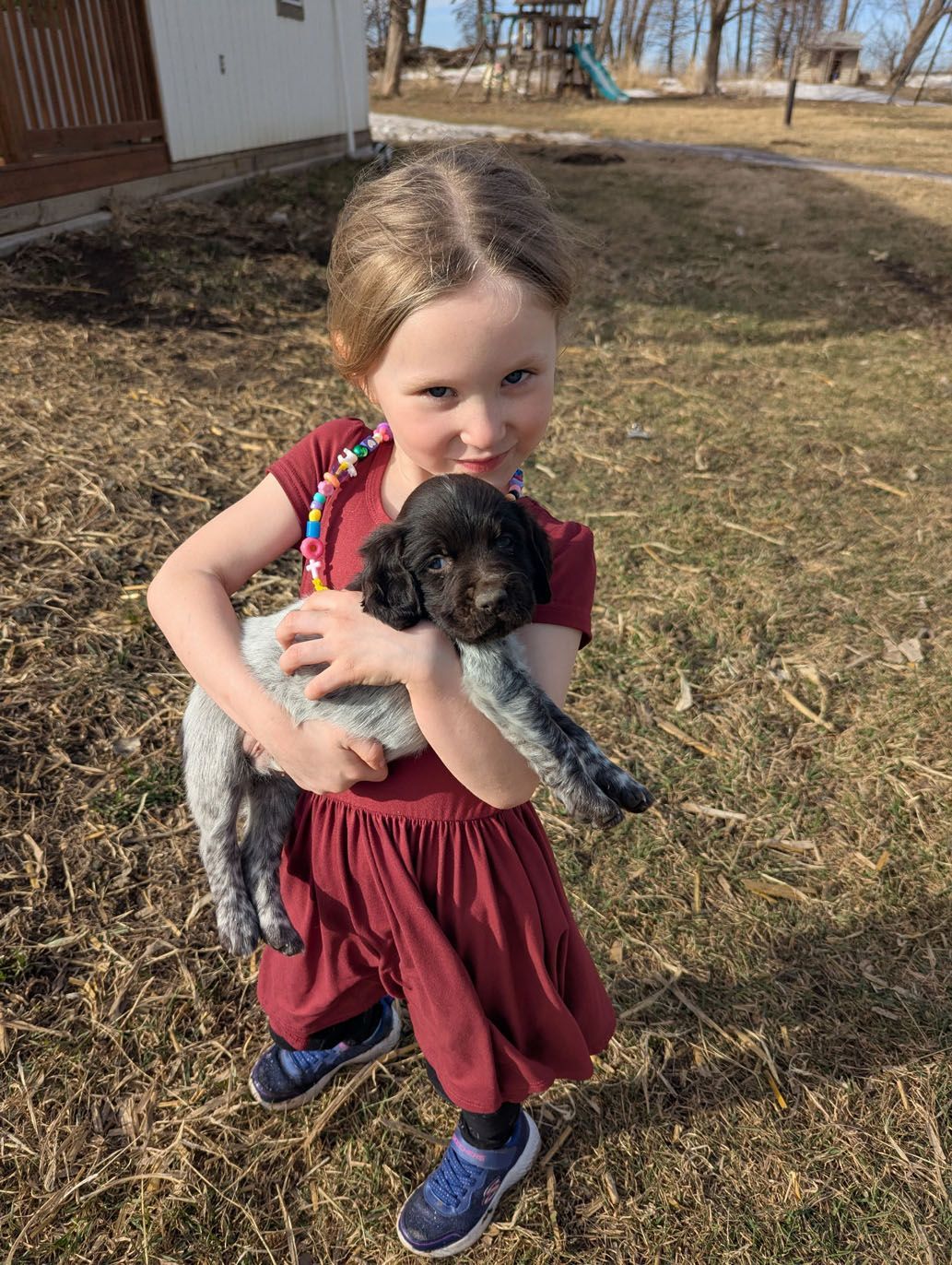 Update 2/9/26: Jig had her litter on 2/7/26. She had 8 total pups but one was born dead. We also lost a small male yesterday evening and are doing a little supplemental feeding of another smaller male that looked like it was falling behind a little bit. So currently there are 2 females and 4 males and hopefully the little male we are are watching closely continues to keep improving.